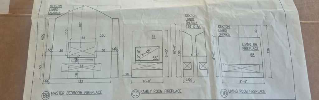 | INSTALACION DE 3 FIRE PLACE CON DECKTONE SLABS, LIMBO ONIRIKA 8,MM DE 126″ X 56″ | |||